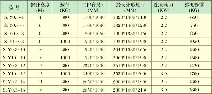 四輪液壓升降平臺(tái)技術(shù)參數(shù)