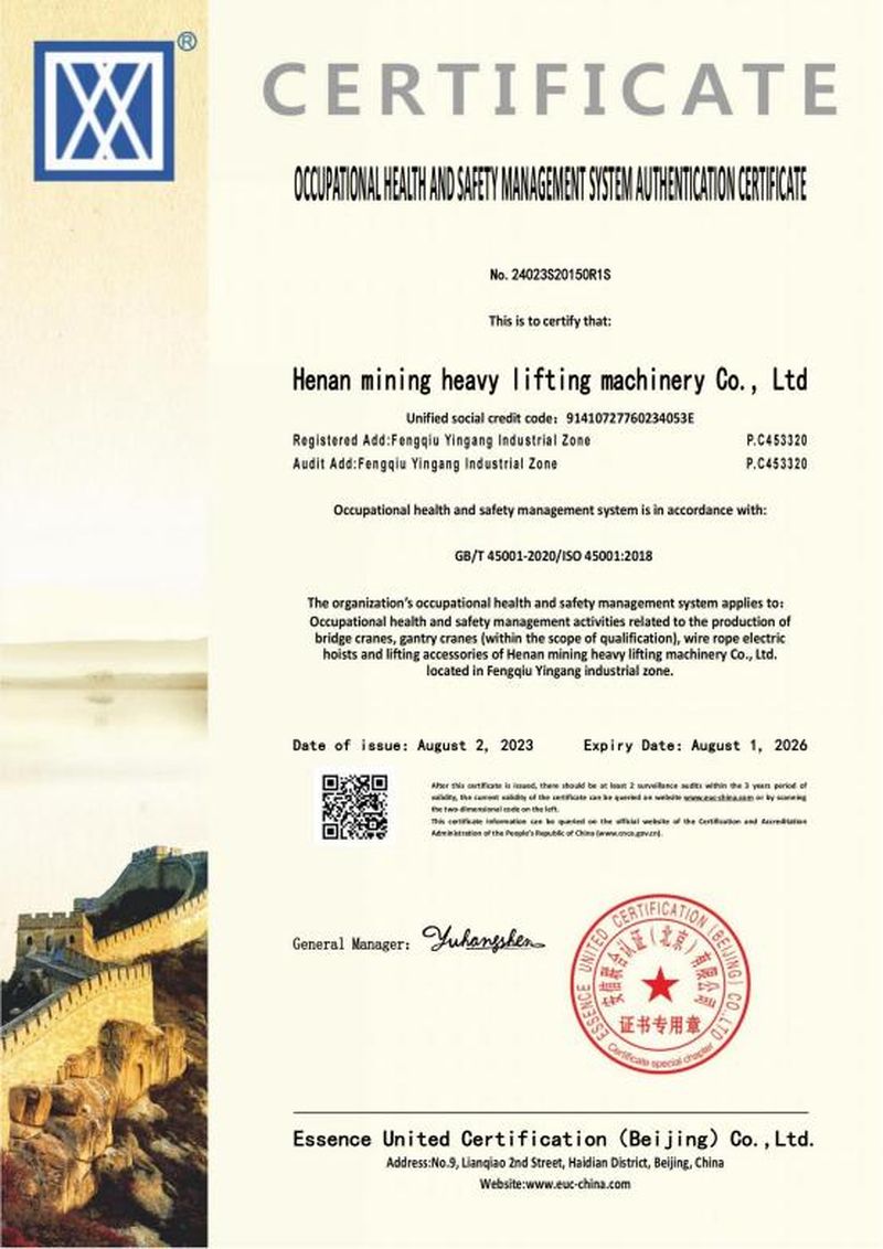 職業(yè)健康安全管理體系認(rèn)證證書(英文版)