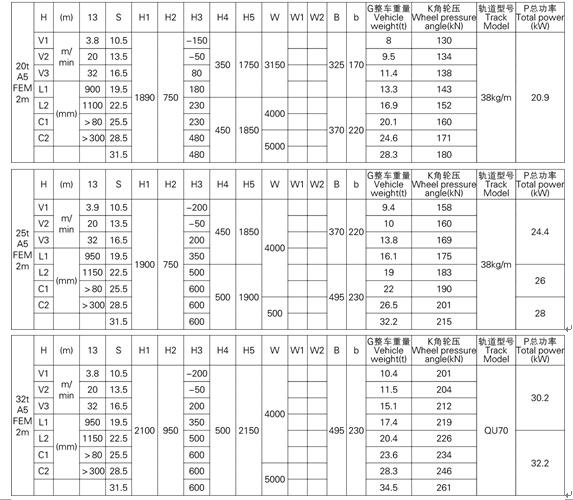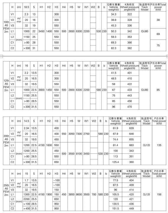 1、本產品系列表僅列出了常用的基本的規(guī)格起重機,工作級別為A5(FEM 2m)時的標準跨度,沒有副鉤的室內用起重機。客戶根據需要可以提出相應的要求。